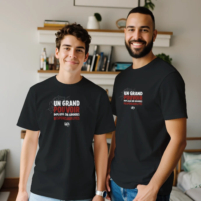 T-shirt sombre unisexe premium | Un grand pouvoir